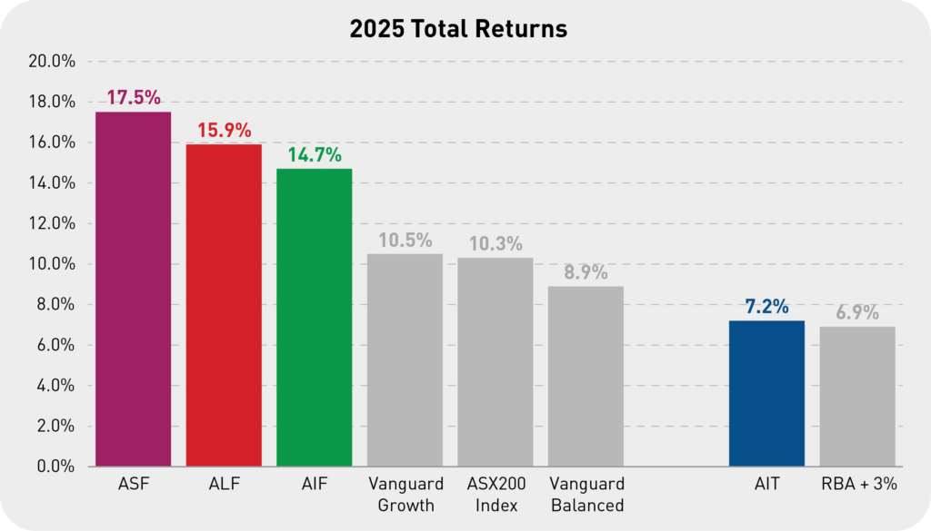 The Affluence Investment Fund had its strongest ever calendar year in 2025, returning 14.7% and comfortably exceeding our target return of inflation plus 5%.
