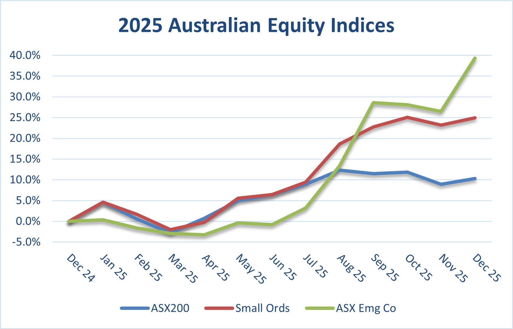For the last few years, we have lamented how cheap small cap stocks were, compared to their large cap cousins. However, they continued to underperform. This changed in 2025, with small cap equities significantly outperforming the ASX200 Index.