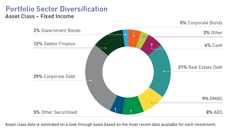 At 31 December, the Fund had exposure to 20 different investments across a wide range of sub-sectors and investment managers. The look through diversification of the portfolio was substantial.