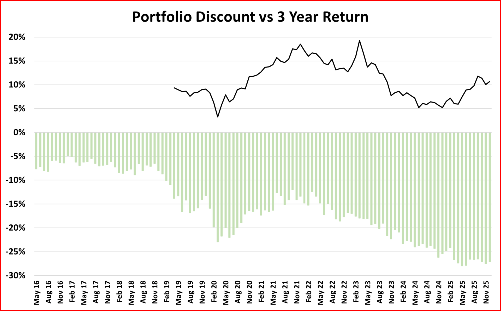 Discounts to NTA increased between 2022 early 2025 and remain at very elevated levels. There is a strong correlation between changes in discounts to NTA and Fund returns. As discounts expand, Fund returns have been lower than they would have been, had discounts stayed the same. We don’t believe that discounts to NTA can increase forever. When discounts start to revert to more traditional levels, this can provide a significant boost to Fund returns, as it has in the past. Quite often, the catalyst for reducing the discounts is a period of above average returns from the LICs themselves, which we’ve seen in many cases over the last 6 months of 2025.