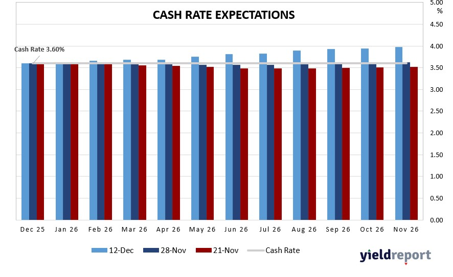 Markets have flipped between late November and now. Previously, a further cut in rates was expected in 2026. Now, the next 12 months is expected to see a rise (or two). That represents an important shift in market sentiment.