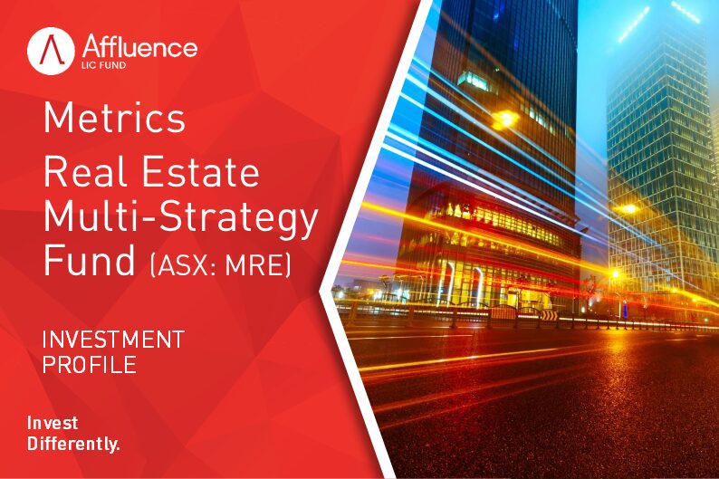 MRE provides exposure to the full real estate capital structure, from senior secured debt facilities to co-investments in real estate development projects. The Trust’s investment manager is Metrics Credit Partners. Metrics is one of Australia’s largest private credit managers, with total assets under management in excess of $30 billion.